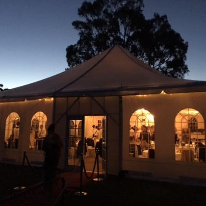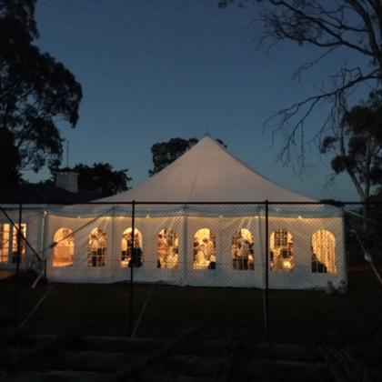 Taradale House Estate can provide a most spectacular Marquee for your reception. Custom made especially for us in NZ - it attaches to the side of our Cape Cod style Tennis Pavillion. This marquee is not the standard style you rent from a party supply company due to its 3m high walls, French windows and translucent canvas. Your guests will never feel squashed and at night it glows across the land. The Tennis Pavilion then acts as a stage for your favourite entertainment.